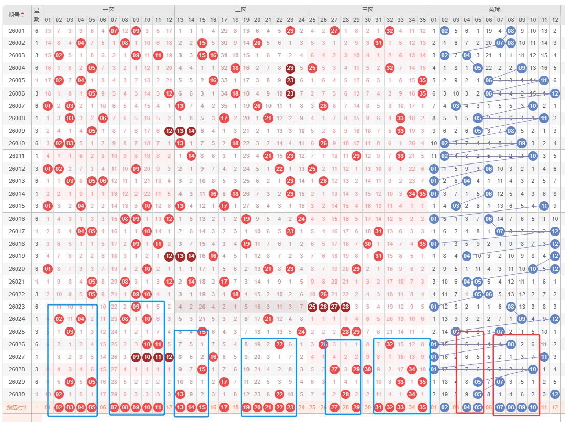 蓝球区,蓝球第一位开了奇数质数,整体上看...(其他思路留给会员文章哦)。