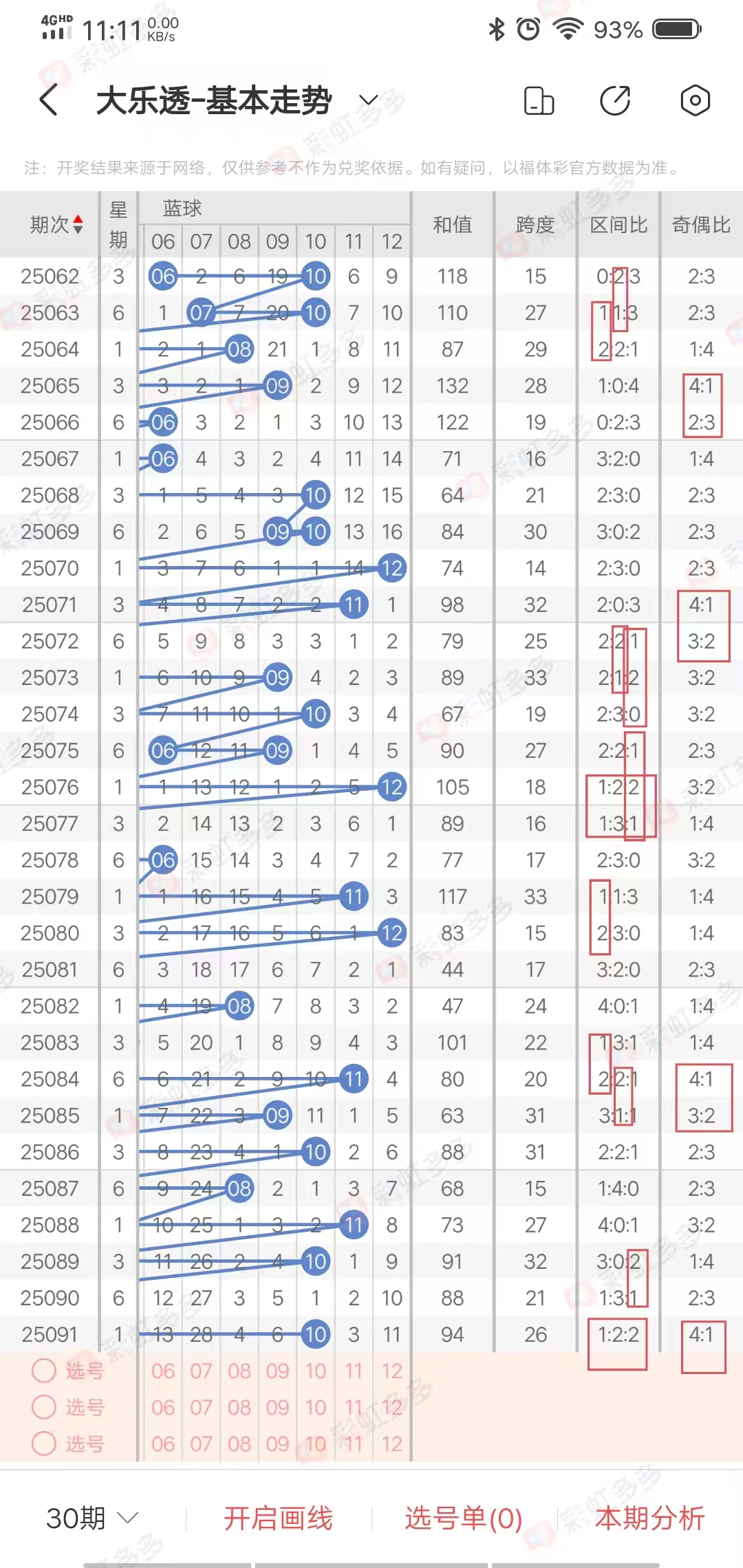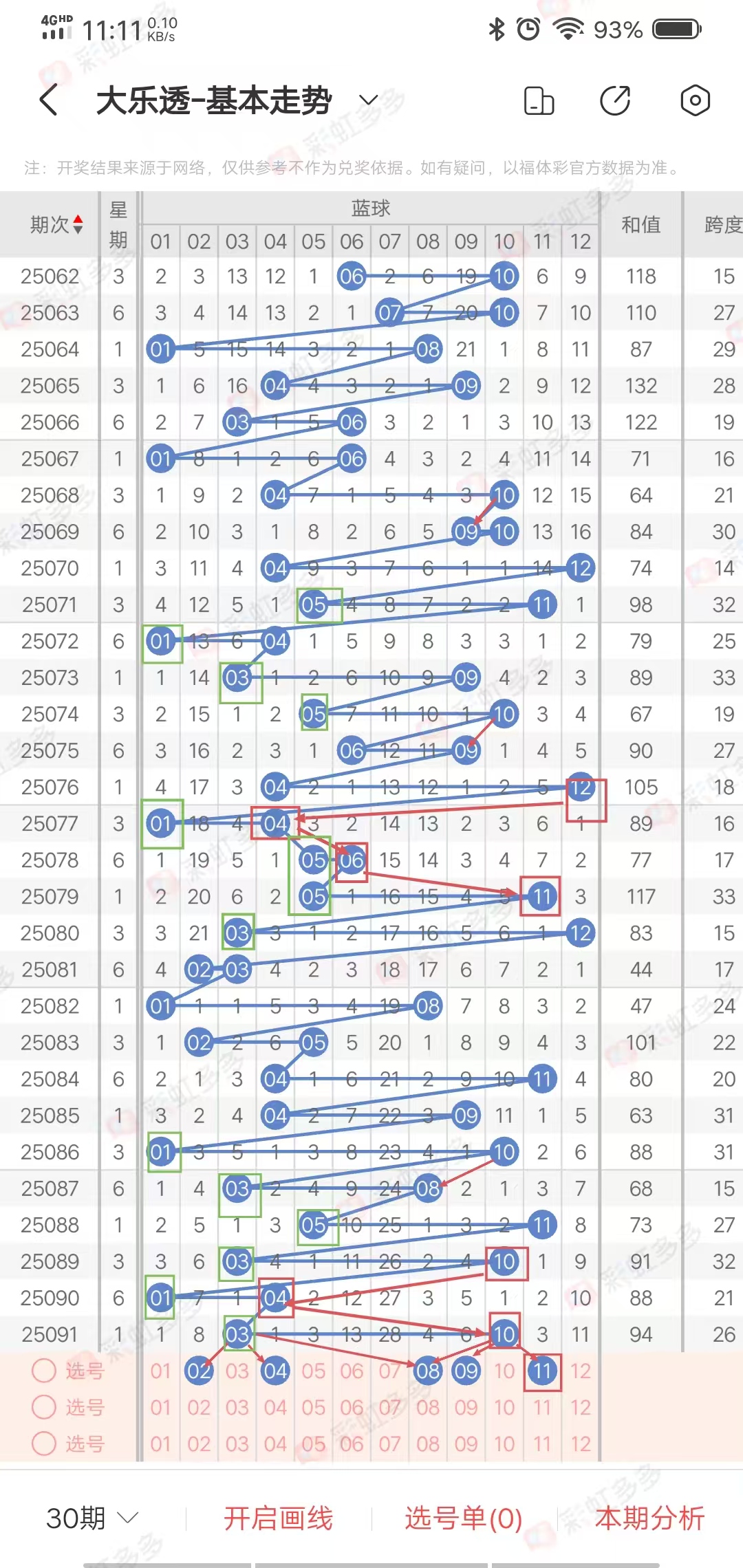 ✔本期大乐透隔期码分析