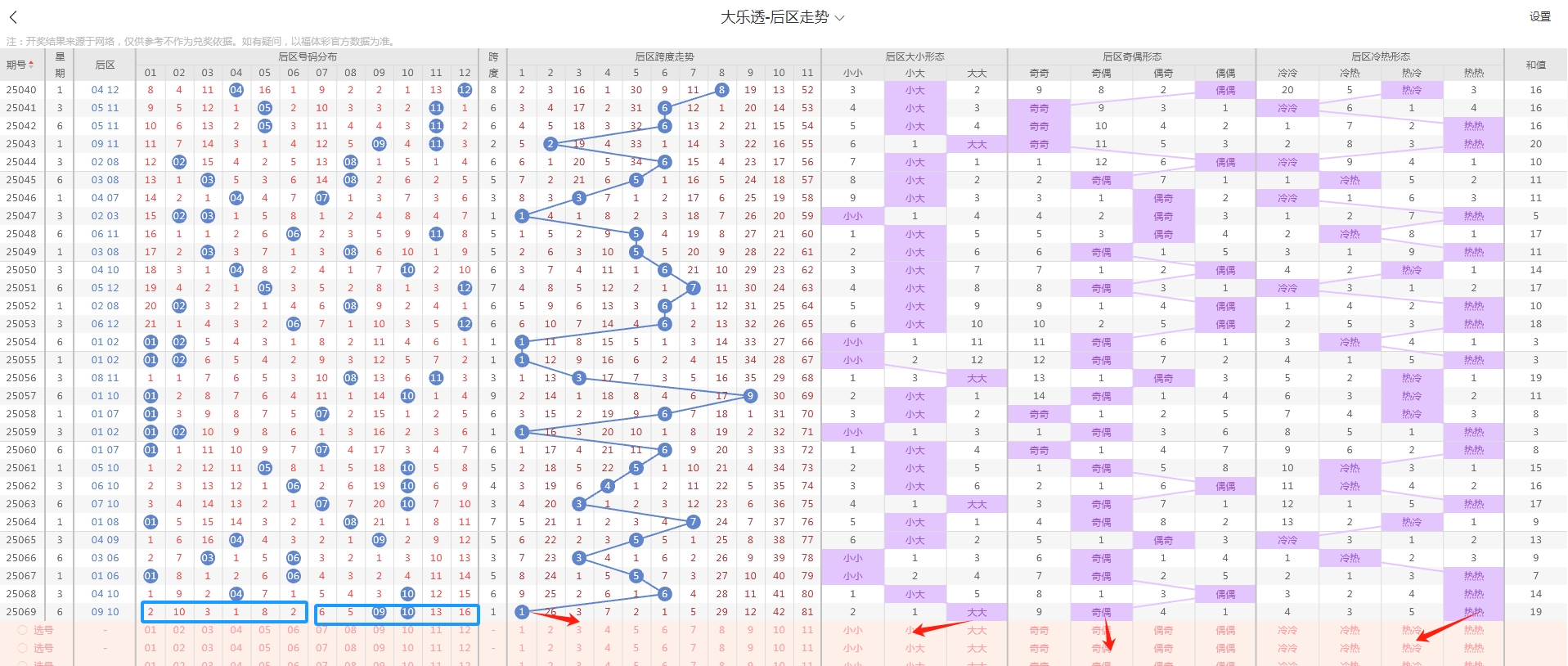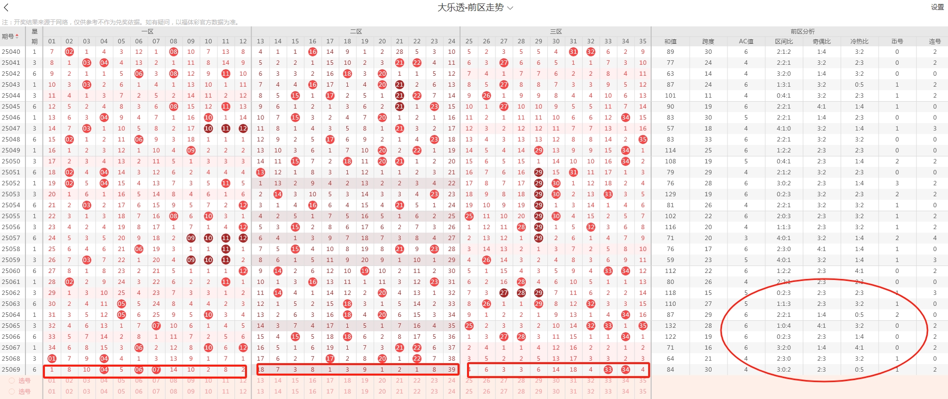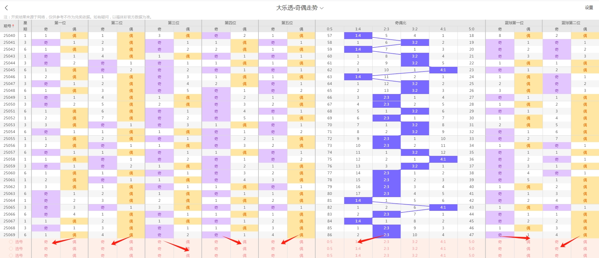 上期(2025069期)分享的内容有部分内容正确!整体组号需要加强!理性看待,参考为主!!!今天分享的这一期是大乐透2025年的第70期,本期主要从区间落位,奇偶趋势等做一些推断,期望对您选号有所帮助。更多的研判和分享会在每天16:30点直播后段有大乐透(或双色球)的直播分享,欢迎大家来直播间互动交流学习。