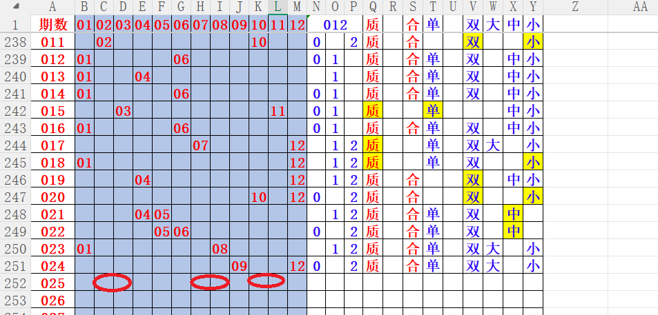 如上图4,012路分析012路,本期重点12路。重点  02 03 07 08 10