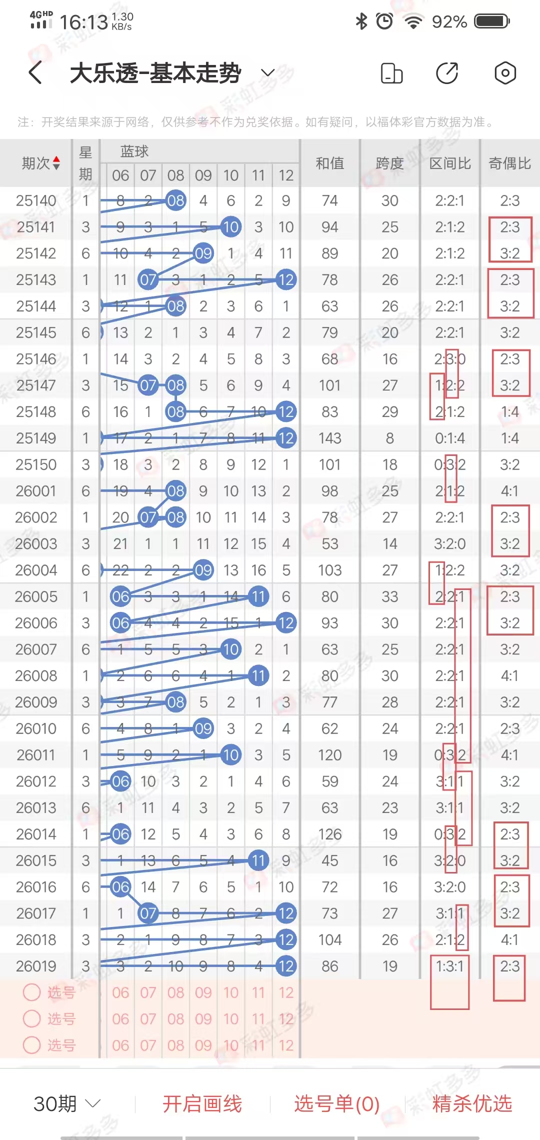 ✔本期大乐透奇偶比分析