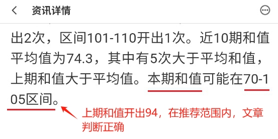 上期开出和值94,与文章推荐范围一致。