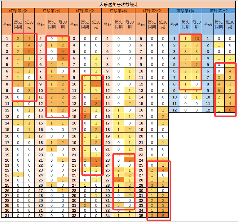 统计历史同期、近30期奖号频率,热门摸底,灵感来源