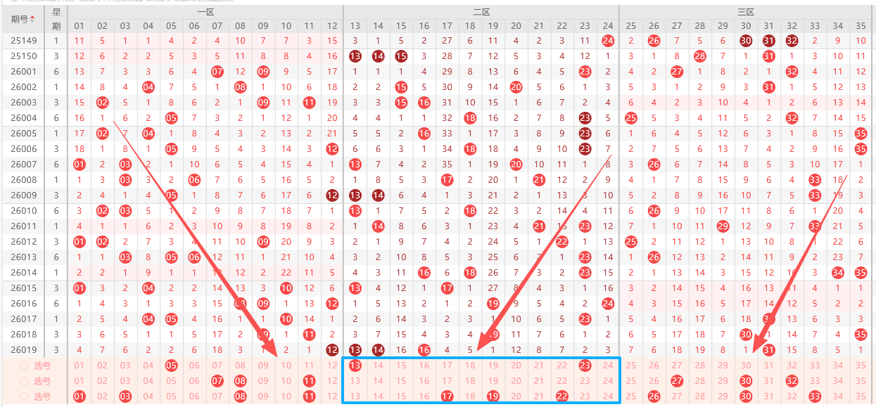 第二区:第二区号码里面,本期看好的号码有13,17和19,另外防22和23这几个号码;