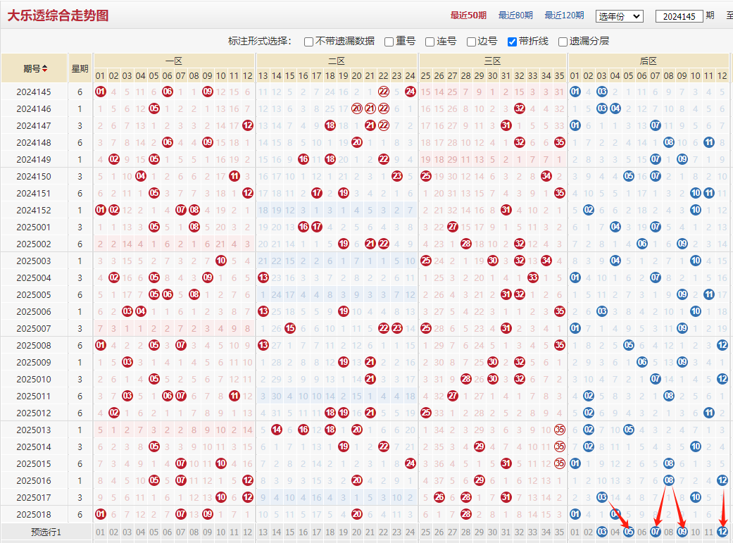 近期走势:018期爆发3码(01、07、09),近5期一区号码相对火热,近5期累计出号11码,显示前区相对火热。