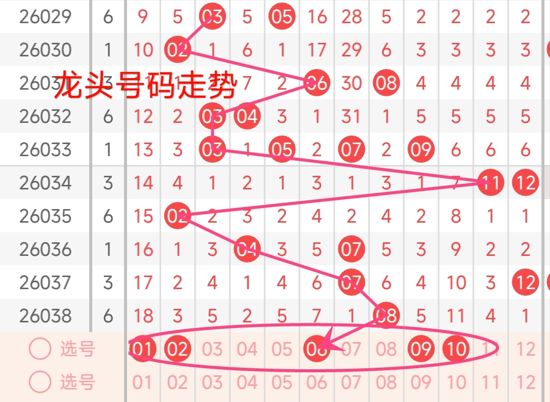 上期龙头号码为08,振幅上升了1点,开出偶数号码。从近期龙头号码的走势来看,近期龙头号码波动幅度较大。龙头走势方面,近十期龙头整体是从小区间逐步向大区间抬升的过程,最低开到过02,最高就是11,整体呈现震荡上行的走势。回顾近几期龙头号码,龙头从04,再跳到07,上期直接开到08,连续几期龙头不断走高,已经积累了足够的上行动能,按照走势的周期性,此时很可能会迎来回调。预计本期龙头号码可以重点关注01-10区间开出。本期还需注意连续多期漏出的号码,需重点关注,有回补龙头号码的趋势。 综合考虑,本期龙头号码推荐关注:01、02、06、09、10。