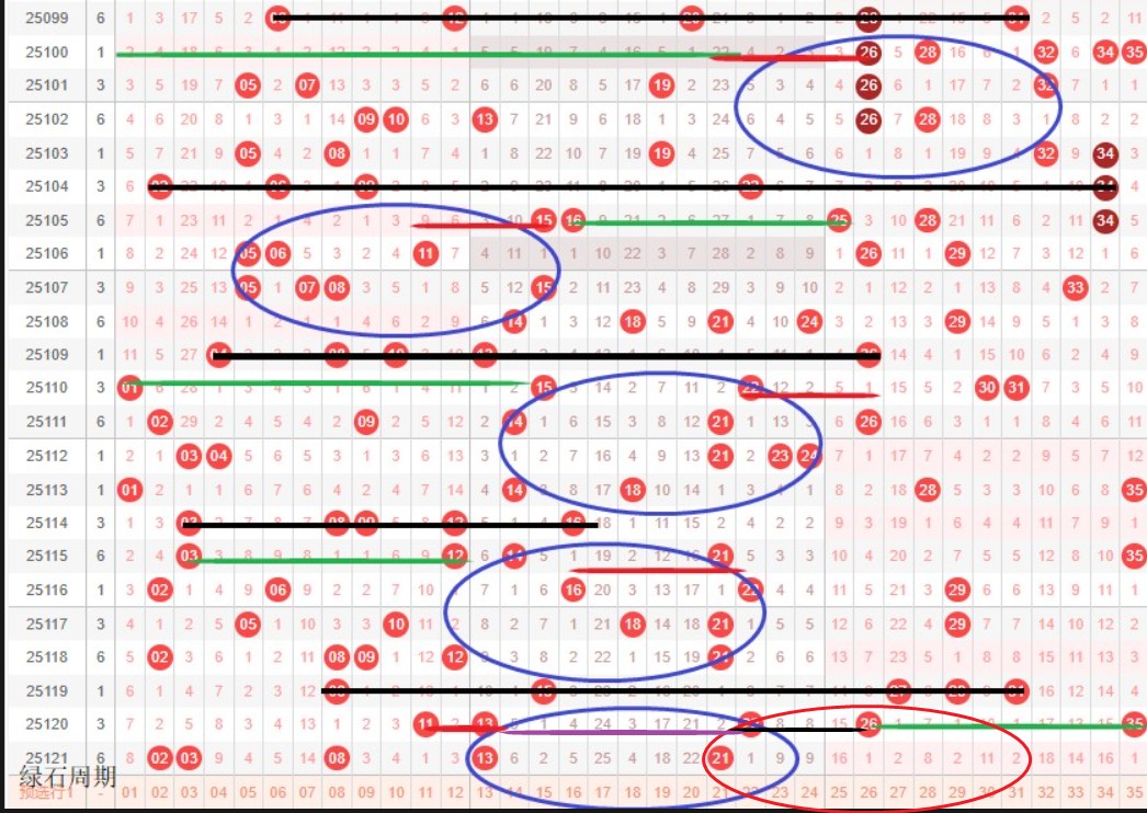 如图所示:体现的是3个局部走势的发展周期,圆圈为密集处的填空,本期定性为新局部走势第4期,架构填空第1期,主力填空第2期,定性本周期蛋跨13-23,真实空间为26-35,则本期2区多开131 122区间比,如定性本周期蛋跨21-31则真实空间为13-22,则本期2区只出1枚或断区。大小行动来看代表大号需要后退,即本期弱势2区为走势正方向。