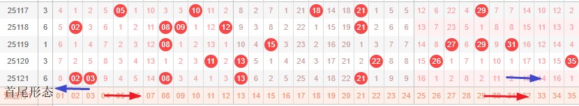 如图所示:首尾制约平衡组范围依次为:缩推推,推推? 本期形态范围优先选择红色右推首尾。由于上期号码处在首尾换4然后中间右推本期交换首尾移动空间连续分割形成间隔1正在重复走势预计本期继续形成走势,本期宜采取继续右推走势常规起号,或体现等距号,形态。