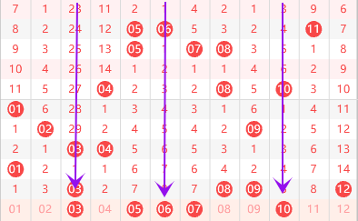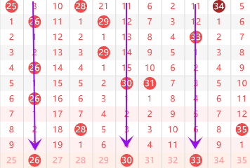 第三区间,上期开出了0个号码球,进行了断区。三区间需要关注25、30两个号码球的补位,防守26、33号码球的交替组合落位。根据以往三区间开出的号码球落位,可以看出三区间在近期一直处于温冷回补。本期三区间仍然不适宜过多去判断区间走热,本区间仍然需要注意三区间中后端温热的号码球落位以及重点关注一下重码球进行抉择与防守。