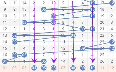 第一区间,上期开出了4个号码球,进行强势号码落位。一区间在近十期来看,一直在与温热号码球进行回补状态。因此在本区间需要关注03、06号码球,防守05、07、10号码球的落位回补。那么通过号码温热分析与落位回补判断,本期第一区间我们仍然不要过多去做号码球,选择好2-3码进行防守即可。