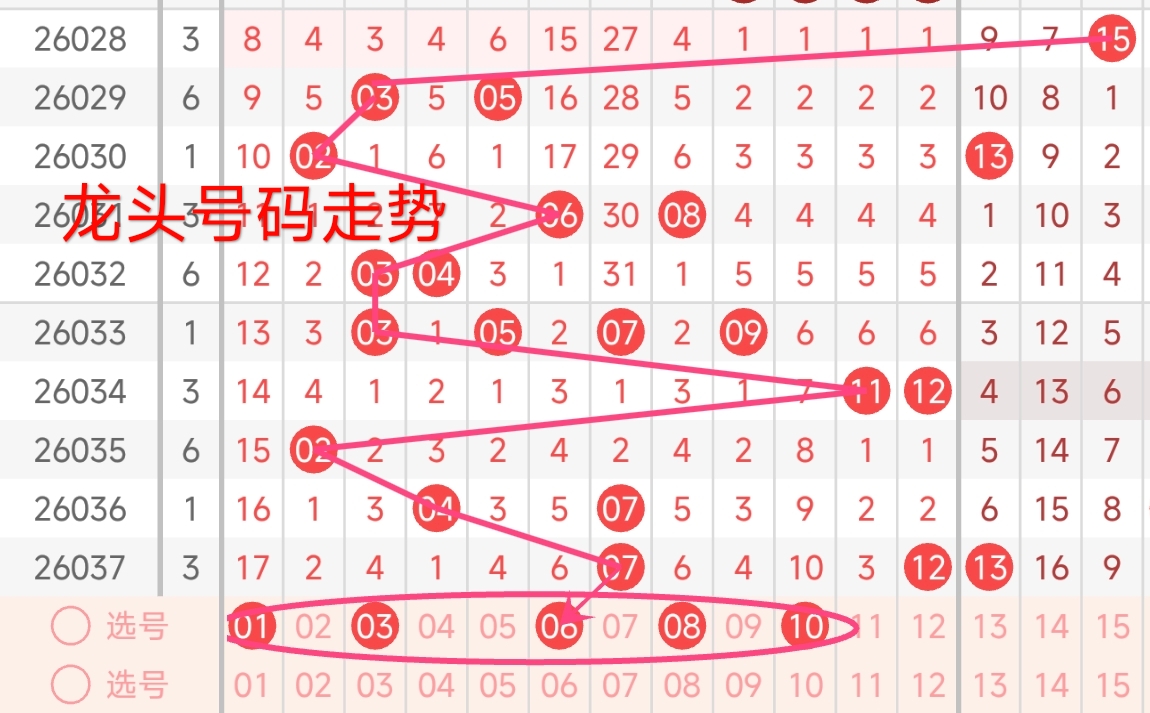 上期龙头号码为07,振幅上升了3点,开出奇数号码。从近期龙头号码的走势来看,近期龙头号码波动幅度较大。龙头走势方面,近10期龙头依次大多整体集中在01-08的小区间,其中01-06区间开出占比较大。上期龙头开出07,属于区间内偏大数值,从均值回归角度看,本期龙头有望回落至更小数值区间。本期还需注意连续多期漏出的号码,需重点关注,有回补龙头号码的趋势。 综合考虑,本期龙头号码推荐关注:01、03、06、08、10。