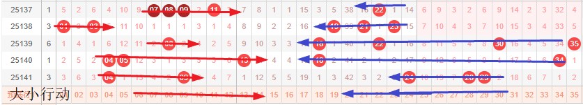如图所示:体现的是3个局部走势的发展周期,圆圈为密集处的填空,本期定性为新局部走势第4期,架构填空第2期,主力填空3期,定性本周期蛋跨5-15,绿色线18-34,其中9-24填成压缩,代表大小均进补空间。