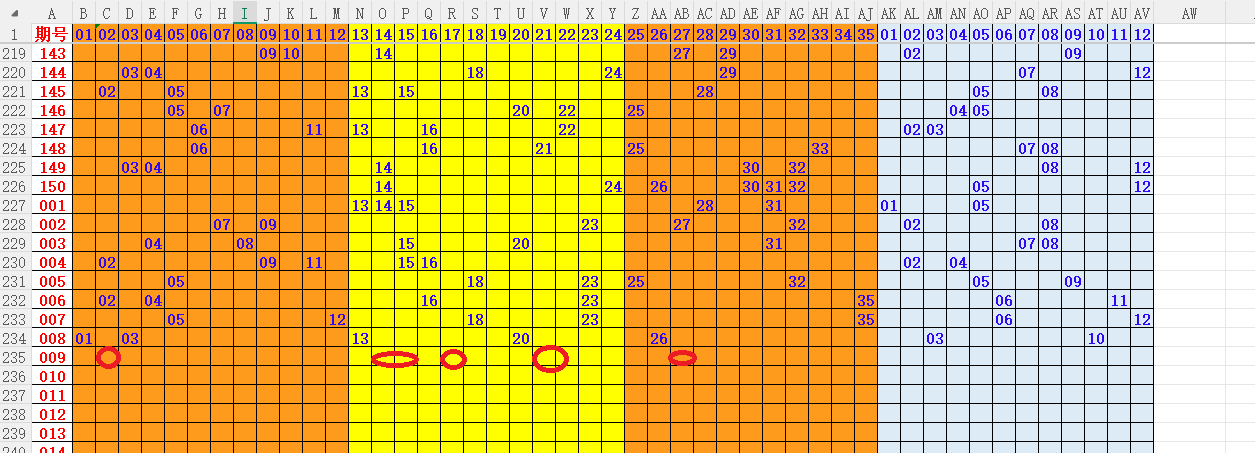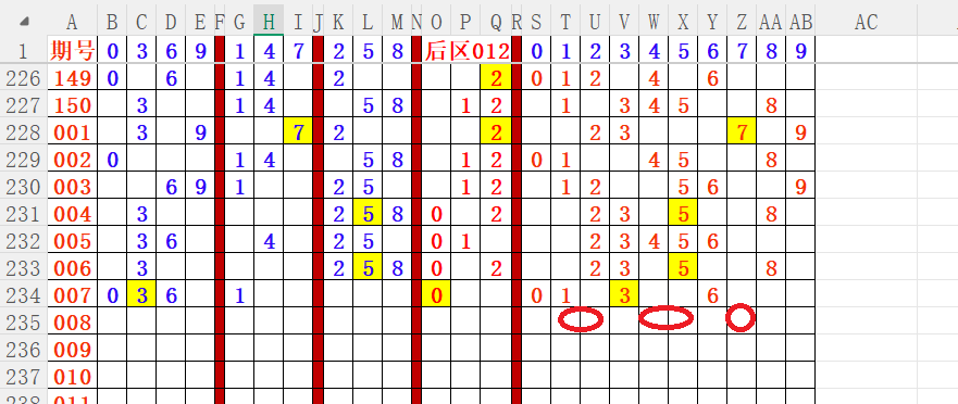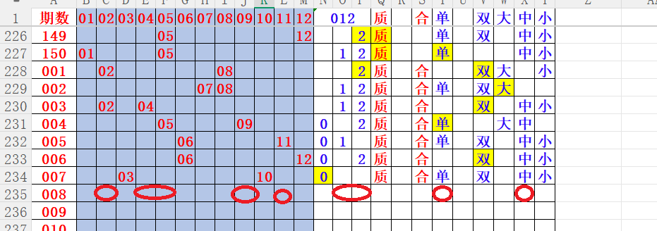 如上图4,012路分析012路,本期重点12路。重点 02 04 05 09 11