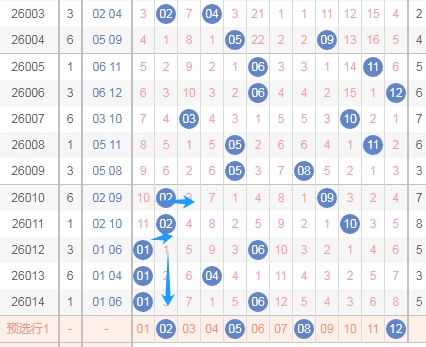 大家好,本人蔡楚门,一个玩彩十几年的老彩民,现在来本平台分享一下本人的对彩票的分析思路和看法,希望本人的文章能够给你们带来灵感和好的运气,首先感谢一起彩提供一个好的平台,下面走势图都是用一起彩平台的走势图,接下来分析一下体彩大乐透第2026015期的前区号码思路和后区号码思路。本账户还有双色球,福彩3D和体彩排列三,体彩排列五,福彩快乐8,福彩七乐彩,体彩七星彩的推荐,大家多点点那些文章吧。