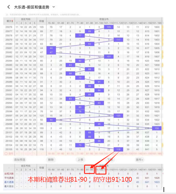 5、和值:上期和值为118,近105期和值分别为89、77、63、87、101、90、83、57、83、114、108、79、76、129、81、102、116、71、76、59、112、80、118、110、87、132、122、71、64、84、74、98、79、89、67、90、105、89、77、117、83、44、47、101、80、63、88、68、73、91、88、94、88、63、93、80、78、120、50、95、155、89、86、98、73、118,本期和值范围有所下降,推荐和值为偶数值,本期推荐出现范围在81-90,防守出91-100区间。
