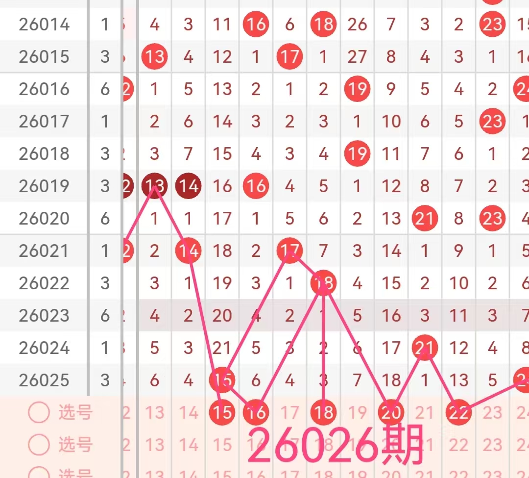 2. 二区(13-24):上期该区间开出两个号码15和24,号码15在遗漏21期后开出,号码24遗漏8期后开出。根据历史开奖来看,近期该区间活跃度较低,本期预计会有1-2个号码会继续开出。特别是那些遗漏次数较大的号码15、20、22和该区间内近期表现较好的号码16、18这个号码在走势上表现出一定的稳定性,且与前几期出号形成呼应,有望出现在本期开奖中。