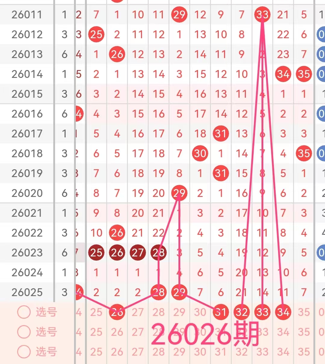 3. 三区(25-35):上期该区间开出两个号码28和29。号码28相隔1期后开出,号码29为该期的凤尾号码,在遗漏4期后继续开出,且号码28和29形成一组二连号的形式。由于上期开出的凤尾号码相对偏小,本期号码会由此增大,凤尾号码预计会在本区间出现,重点关注号码31、33、34。但是观察历史开奖来看,该区间近期出号较少,因此本期考虑仍然会有1-2个号码继续开出,特别是那些近期表现较热的号码,如号码26、33本期有望继续开出,因此它们有可能成为本期的出号热点。