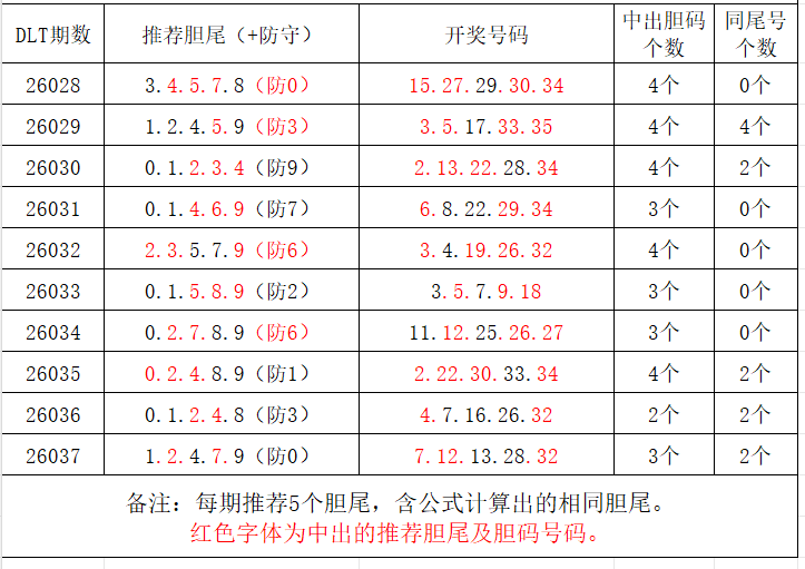 如图,每期推荐胆尾中出1-4个。上期推荐胆尾中出2尾3码!推荐胆尾是按照公式计算的顺序,不定位红球号码的顺序。本期推荐胆尾:1尾/6尾/9尾/5尾/3尾,加推防守胆尾+胆码号码:***(会员专区可见)。个人分析,仅供参考。