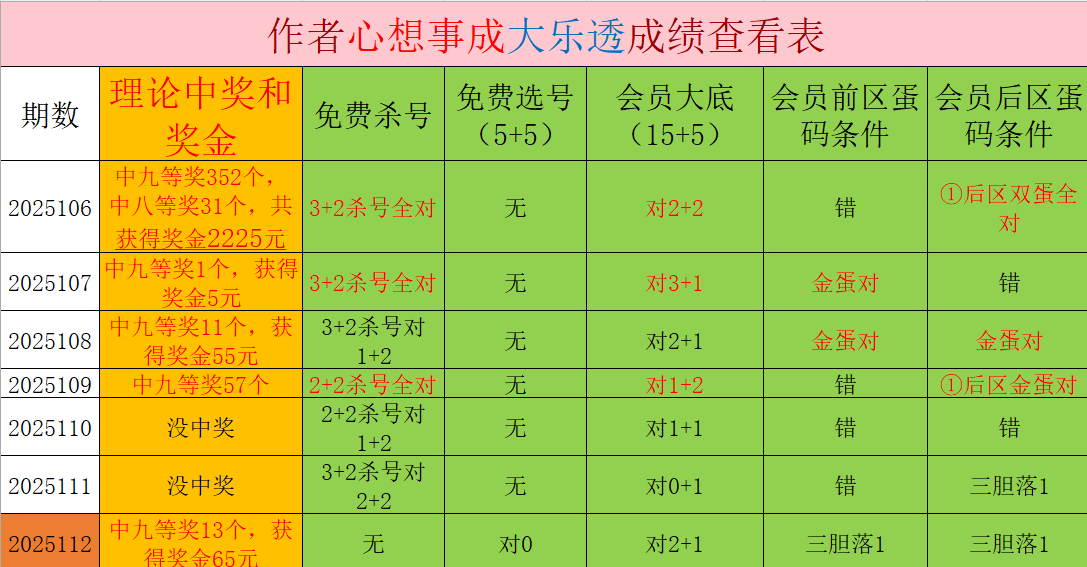 这5个号码覆盖了热号(02、09、12、10)和极冷号(11),平衡了持续活跃和回补可能性,后区组合成10注可覆盖多种情况。