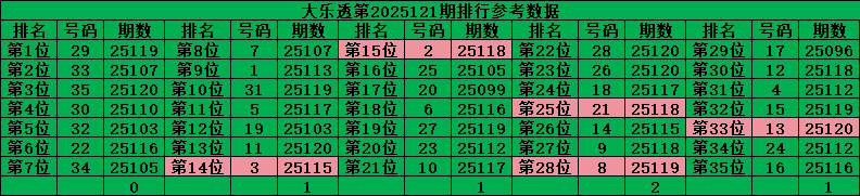 超级大乐透前区是从01-35的号码中每期开出5个号码,把历史数据按照出现次数排行后分成五个区,每个区7个号码,前二位的号码是热位号,中三位的号码是温位号,后二位的号码是冷位号,理论上每个区每期是开1个号码,对比最近开出的数据分析: