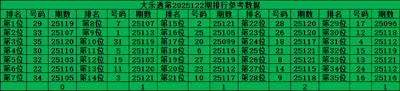 综上所诉超级大乐透第2025122期推荐号码: