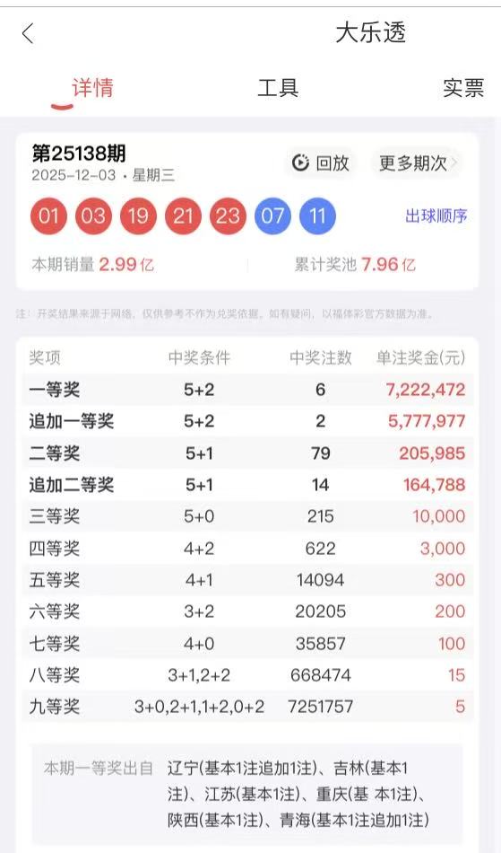 2025138期大乐透开奖回顾:
