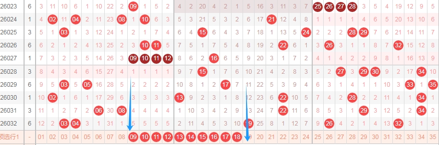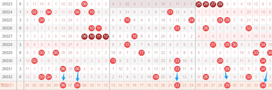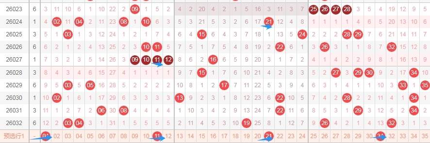 那么根据上面的分析,本期体彩大乐透可以得到这些数据: