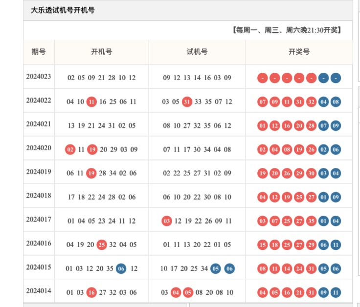 还有一个很多彩民朋友常用的推测开奖号码的数据依据:本期的开机号和试机号。所谓开机号和试机号,就是为了测试摇奖机和摇奖球而摇出的一种号码。据统计,每次的开机号和试机号和最终的开奖号码或多或少会有重复。无论这是巧合还是规律,这个数据的走势值得参考。