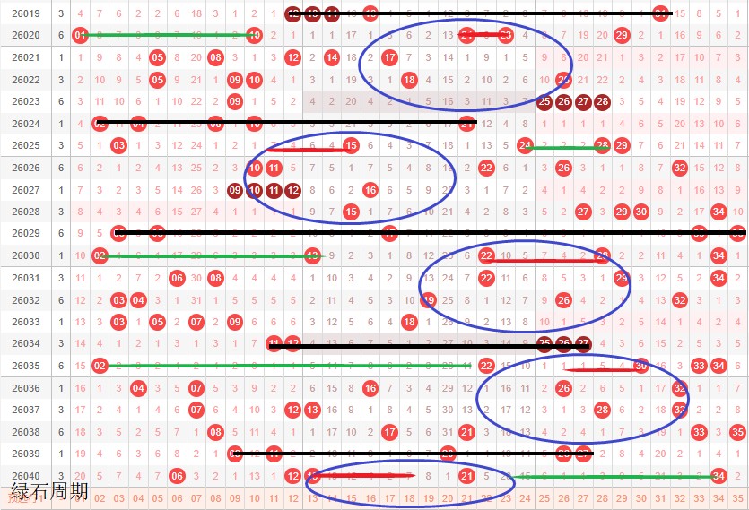 如图所示:体现的是3个局部走势的发展周期,圆圈为密集处的填空,本期定性为新局部走势第3期,修饰真实目的空间期,主力填空第1期,本期建蛋2区定性蛋跨12-22,真实空间23-34。绿色线填空,蛋跨预估1-2枚。大小3枚布局。