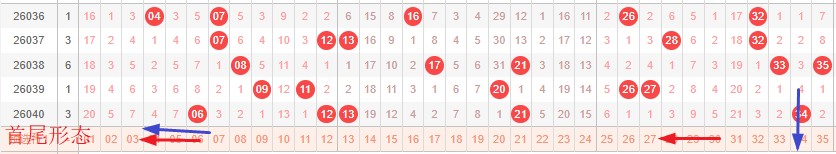 如图所示:首尾制约平衡组范围依次为:推缩推,缩拉? 本期形态范围优先选择红色左推首尾。由于上期号码处在间隔1带2连的分割完成,本期宜采取继续左推走分割形态,或体现间隔1或者重号走势。