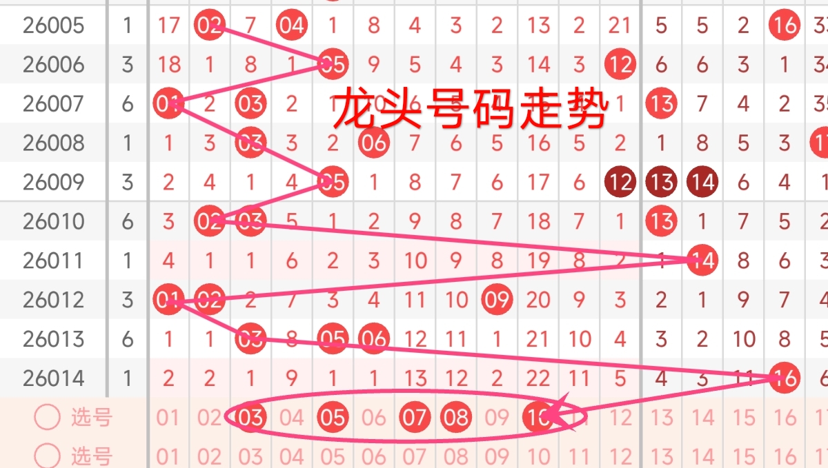 首先让我们回顾一下上期大乐透26014期的开奖为16、18、23、34、35,蓝球01、06。前区和值126,前区跨度19,区间比为0:3:2,奇偶比为2:3。