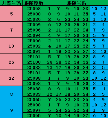再从近期跟随号中挑选号码,选取每个开奖号码最近3期的跟随号,2次以上的号重点考虑: