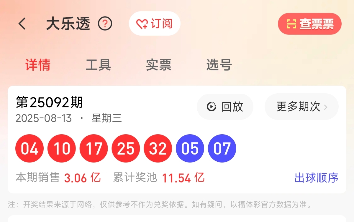 首先让我们回顾一下上期大乐透25092期的开奖号码为04、10、17、25、32,蓝球05、07。前区和值88,前区跨度28,区间比为2:1:2,奇偶比为2:3。