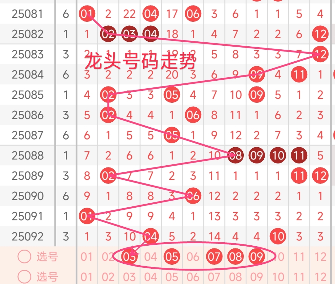 龙头号码走势分析: