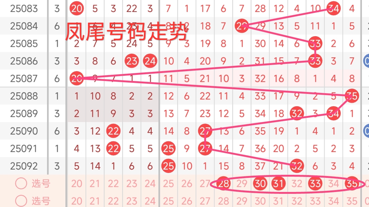上期凤尾号码为32,振幅上升了5点,开出偶数号码。从近期凤尾号码的走势来看,近期凤尾号码波动较大。上期凤尾为 32,属于大号偶数。近期凤尾号码多在 红三区之间波动。结合历史级冷号解冻预期,预计本期关注 28-35区间作为本期凤尾的可能性。 本期还需注意连续多期漏出的号码,需重点关注,有回补凤尾号码的趋势 。综合考虑,本期凤尾号码可以重点关注28、30、31、33、35。