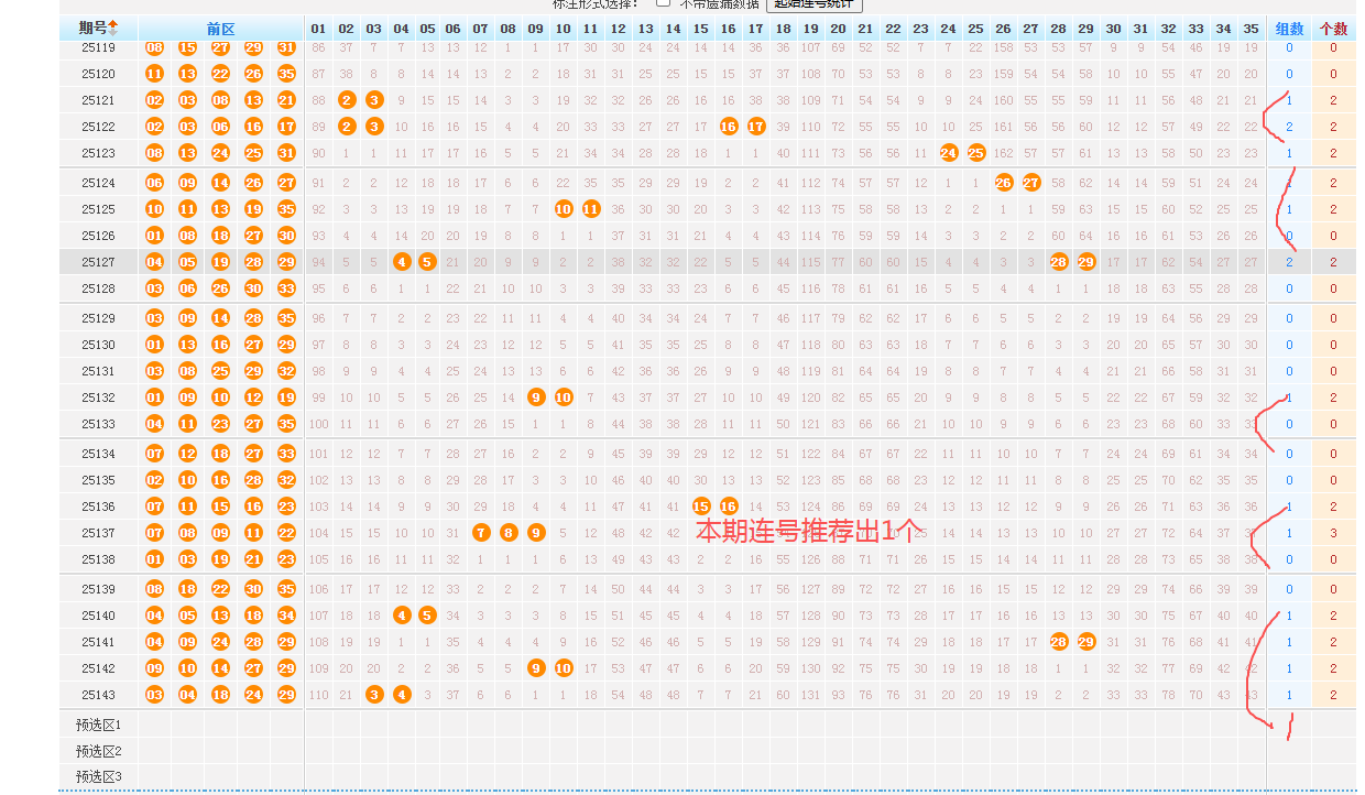 1、前区重号走势:上期前区开出1个重号,近80期出号个数为:-1-1-0-0-1-1-2-0-0-0-0-1-1-0-1-0-1-0-0-0-1-1-1-1-2-0-0-1-0-3-1--0-2-0-0-1-0-0-1-2-1-1-0-1-1-1-0-1-0-0-0-1-0-0-0-0-0-2-0-1-0-2-0-0-0-0-0-1-0-1-0-0-0-1-0-1-2-0-0-0-1-1-2-1-,根据出号规律出121后紧随出-0-0-2-1-0-0-3-0-0-0-2-2-1-1-1-0-0-0-0-1-0-1-1-1-1-1-0-,本期推荐出1个,防守出0个。