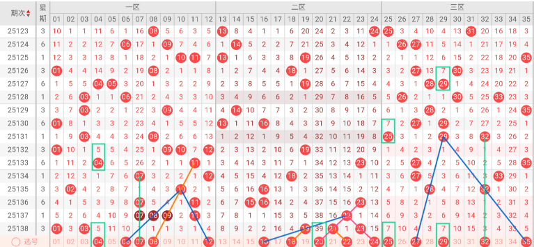 三区(25-35)分析:上期该区没有开出号码,近10期占比26%,与上期相比-6%。本期无三斜连号趋势,隔码斜连走势:27 35。该区走势是本期的核心矛盾。在稳定输出两期2码后,出现“三连断”的历史极值,在任意区间都是极为罕见的小概率事件。本区区间已积累巨大的数值和出号压力,从概率学上看,连续断档4期的可能性极低,这种极端偏离状态不会持续。且考虑到~,其回补力度可能较强,~,即开出2-3个号码。在确定性回补的前提下,~,将成为回补的先锋;同时配置~,在区间整体强势反弹时,~。推荐关注号码:25、27、29、32、35。