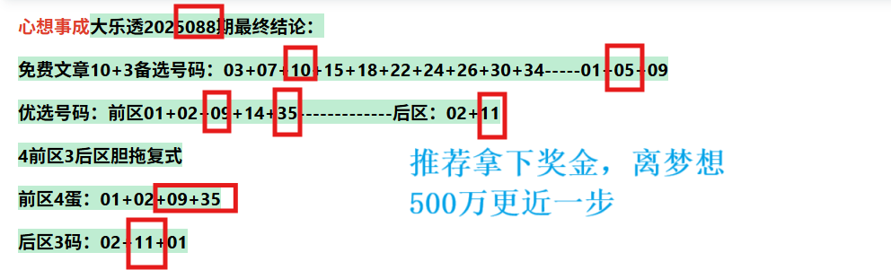 【心想事成】089期大乐透见解:留意高频数字和冷热搭配,上期中奖了,本期连红会吗