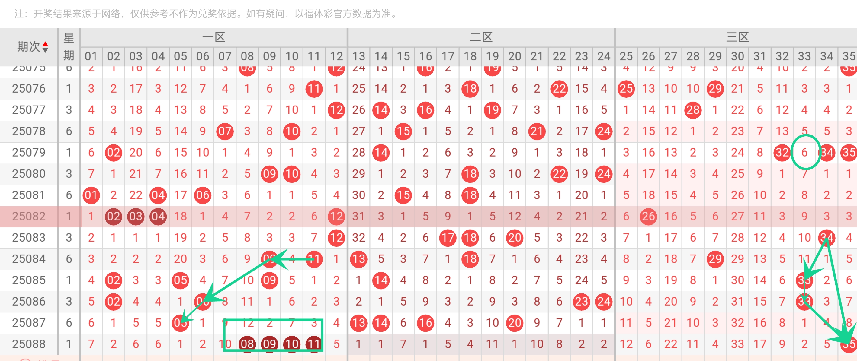 07、10:近30期后区热号(各4次),07遗漏2期后回补概率高。