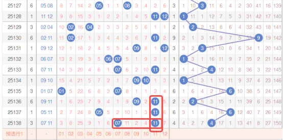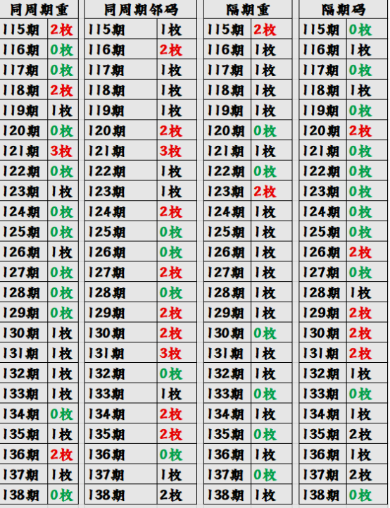 139期前区会经常出重复号码,重码个人建议选择0-1枚重码做为今天开奖号
