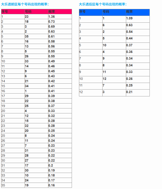 大乐透算法各类号码分布图