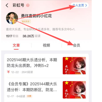 更新一起彩APP至最新版本,进入勇往直前的小红花会员专区点击文章购买会员