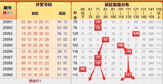 接下来我们来看前区小大、奇偶、质合、和值分布图: