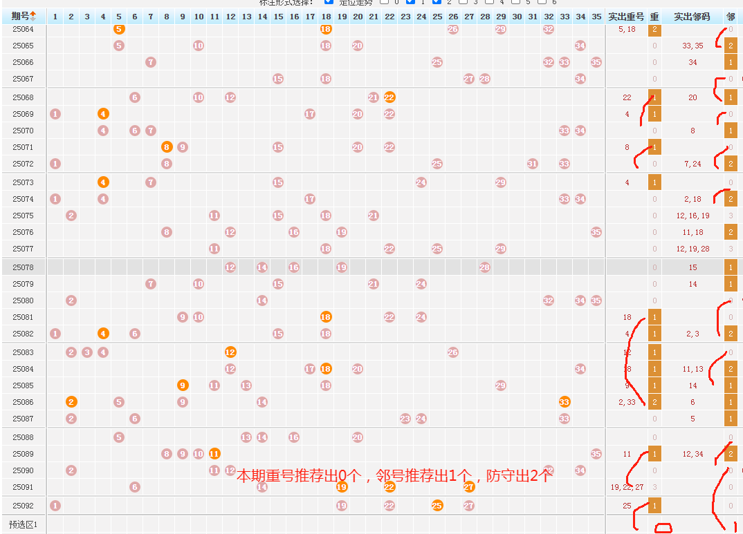 前区排除不看好的号有: 08 09 10 11 12 13 01 35(绝杀)