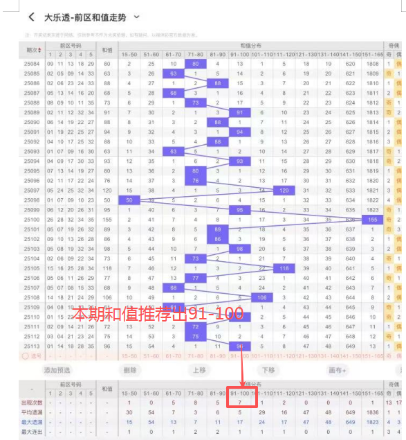 前区奖号开出0个重号,连号开出0个,奇偶比2:3,和值为98,跨度为34,三个区的区间比为:1:2:2,后区号码开出奇偶02 03,开出0个重号,出2个小号。