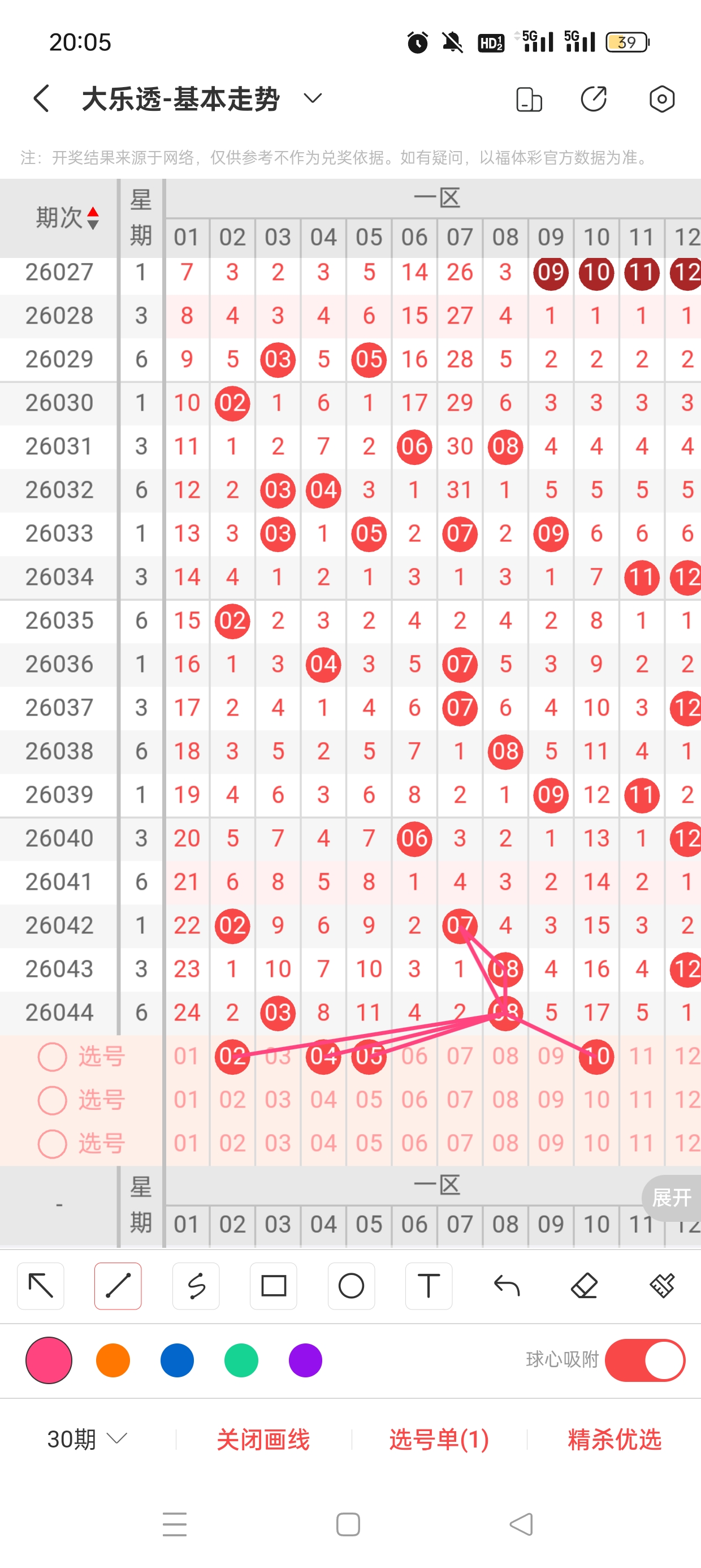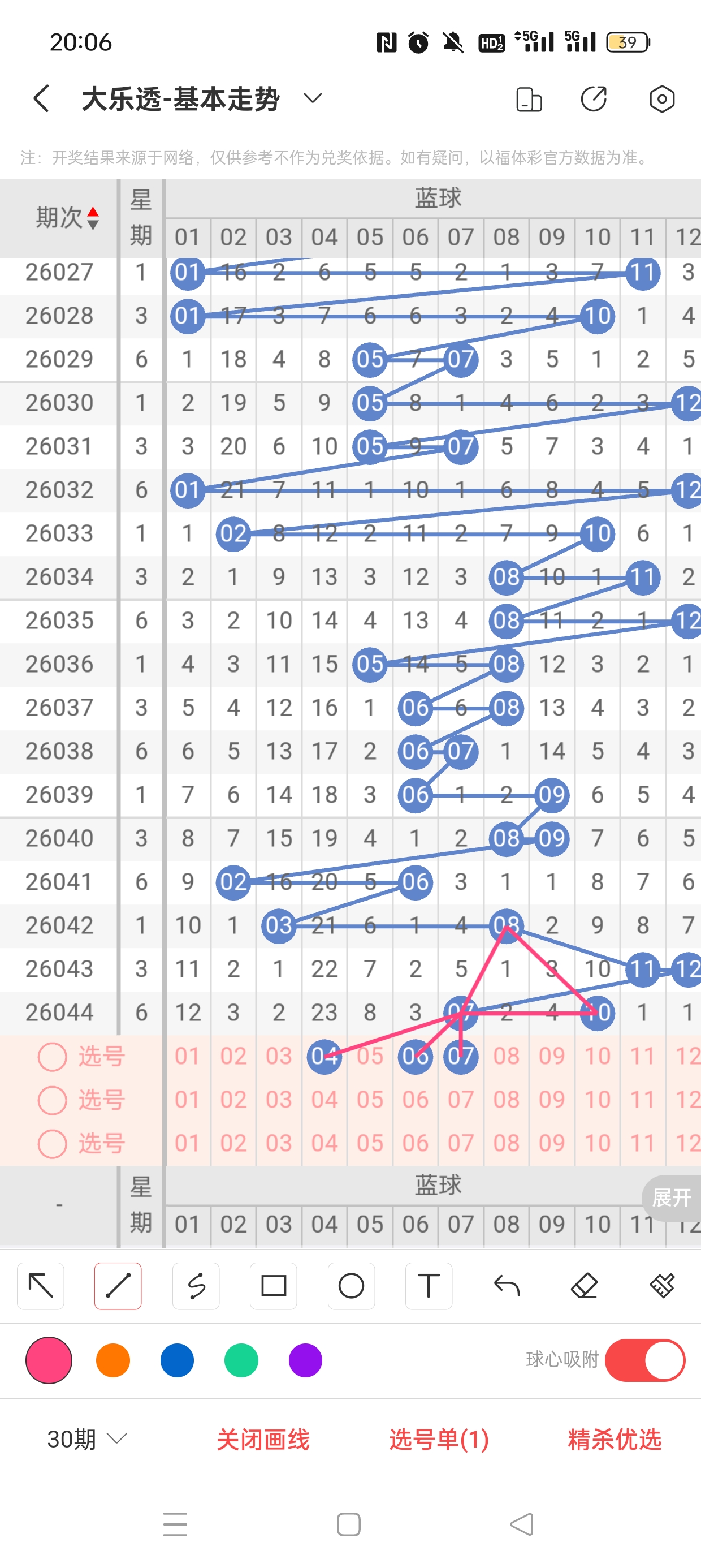 26044期开奖结果:3、8、22、26、29+7、10,奇偶比2:3,大小比3:2,和值86,012路1:1:3,邻孤传0邻3孤2传,同尾号无,传号8、22,连号无。总结完毕,下面开始本期分析。