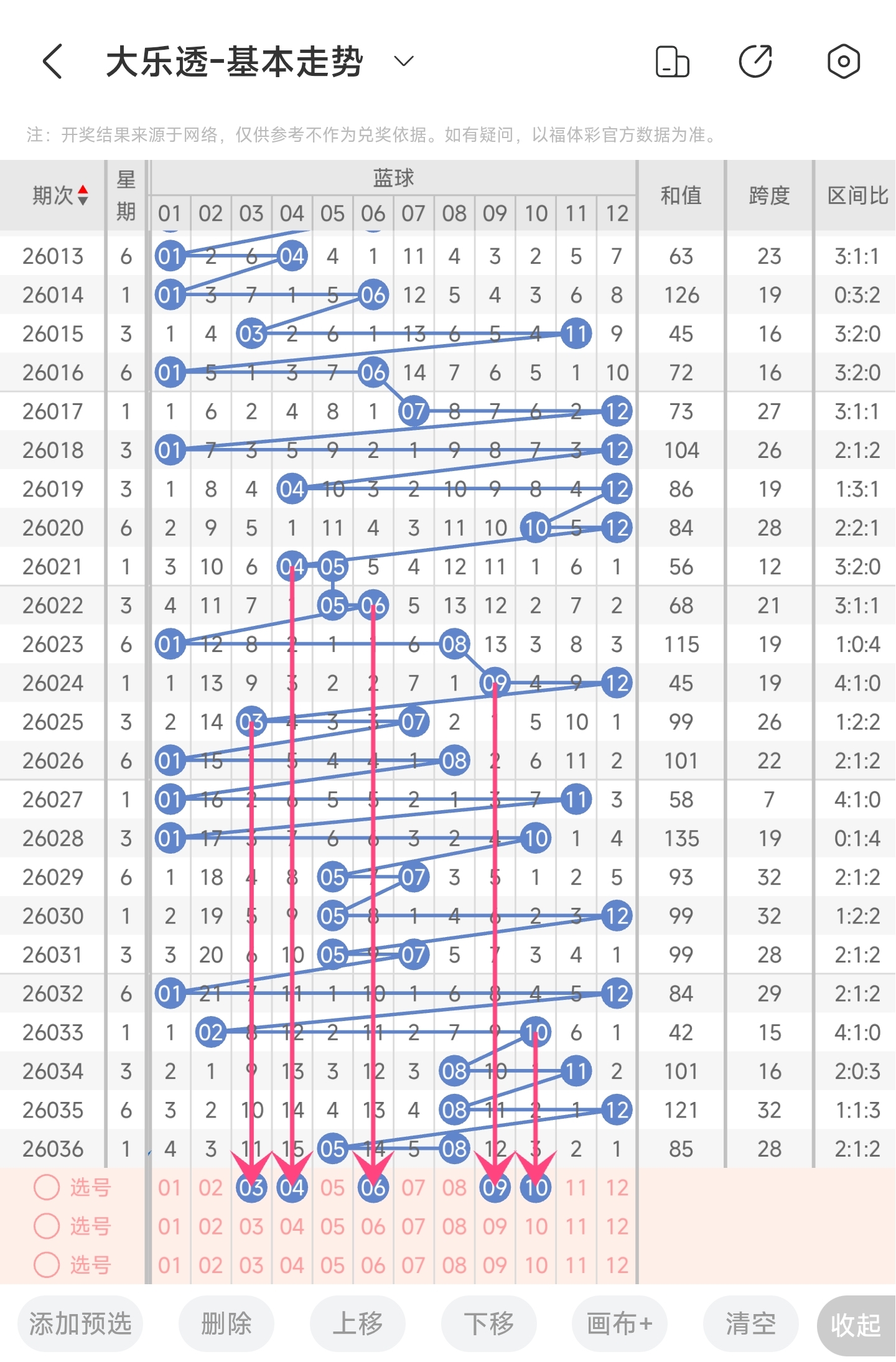 第26027期大乐透文章推荐命中4+0,红球3胆码中10,龙头命中9。