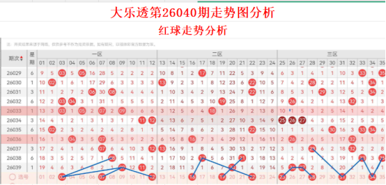 上期(26039期)三区(25-35)开出 2627,延续大号热势;二区(13-24)仅 20,出号回落;一区(01-12)开出 0911,尚在正常范围。本期重点方向为:
