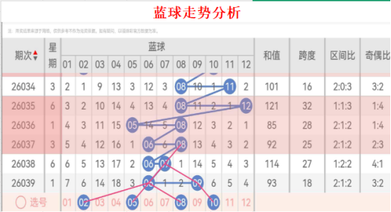 首先给大家说下我看号的思路以及一些想法,我每期基本都是按照斜连号以及根据上一期开出的号来判断下一期的走势的。我会综合近百期的走势来分析。