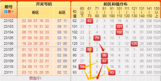 接下来我们来看前区小大、奇偶、质合、和值分布图: